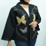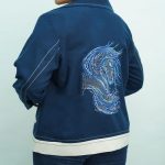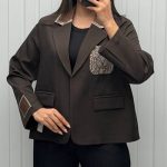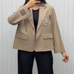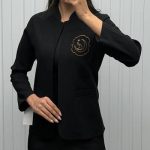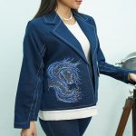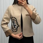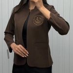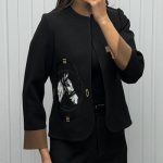 کت کرپ شانتون یقه ایستاده گلدوزی طرح اسب کد 2463