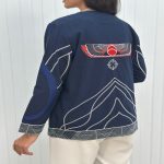 کت لینن سرمهای یقه انگلیسی گلدوزی طرح اسب کد 1915