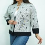کت لینن راهراه گلدوزی طرح ابر کد 191