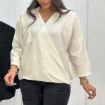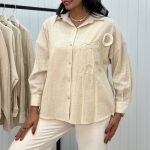 شومیز اورسایز لینن مدل چپ و راستی کد 1416
