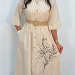 پیراهن کفتان لینن راه راه با کمربند کد 1912