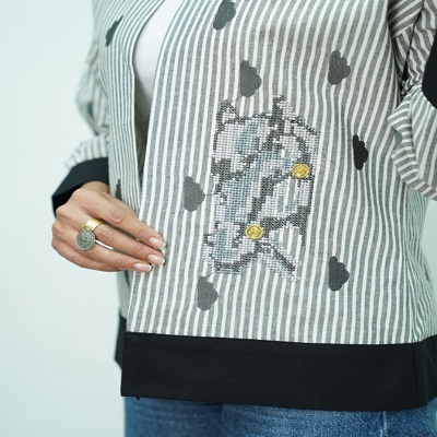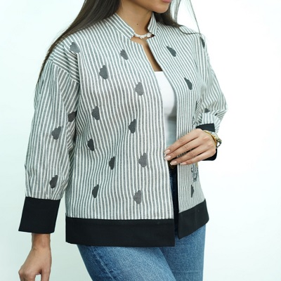 کت لینن راه‌راه گلدوزی طرح ابر کد 191