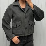 پالتو ذغالی یقه بلیزر تک دکمه کد 99